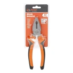Alicate universal de 8″ con mango bicolor TPR, de diseño alemán y fabricado en acero al carbono forjado en estampa pulido. Posee una dureza de corte de HRC55-65 y una dureza del cuerpo de HRC38-50.