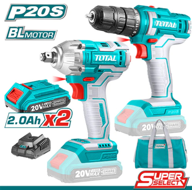 Combo taladro inalámbrico 20V + llave de impacto 20V TOTAL