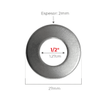 Golilla plana fabricada en acero con recubrimiento zincado, diseñada para distribuir la carga y proteger la superficie de fijación. Medida 1/2″, uso común en ensamblajes mecánicos y aplicaciones generales. (1 unidad)
