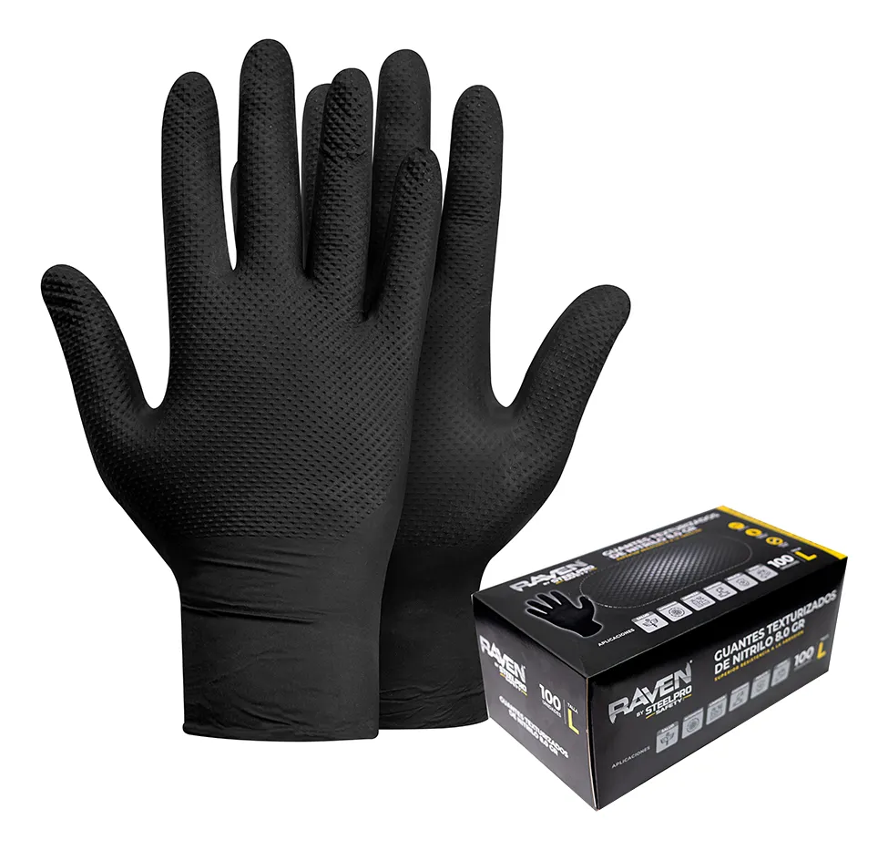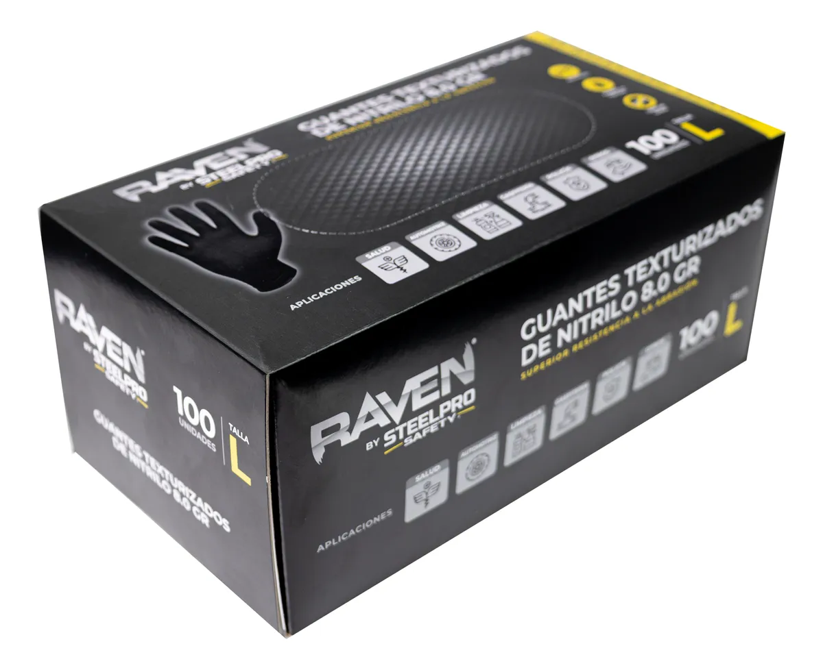 Guante Nitrilo Texturizado Negro T/M RAVEN STEELPRO