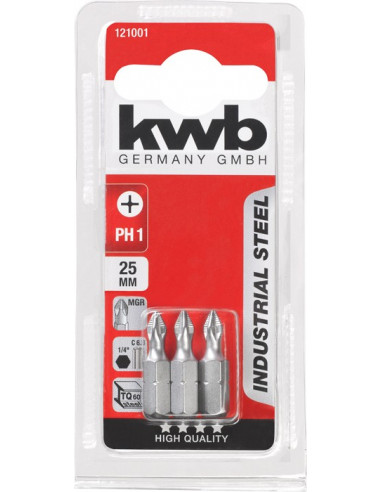 3 Puntas Industrial 25mm PH 1 estrella KWB