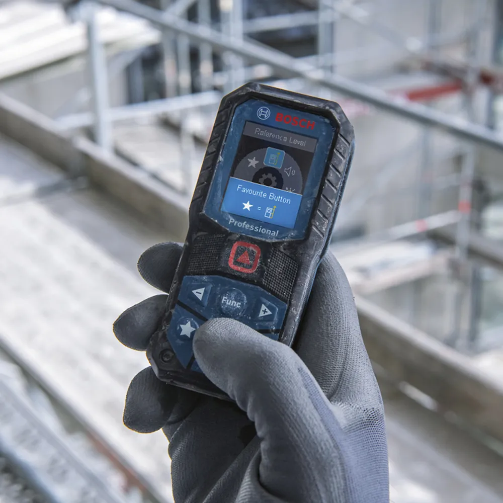 El medidor láser GLM 50-22 de Bosch tiene un alcance de hasta 50 metros y es compatible con un trípode de 1/4″, es recomendado para mediciones más ágiles y con más autonomía. Usar el medidor láser es muy simple, solo es necesario apuntar el láser al lugar que se desea medir y presionar el botón, cuando el medidor no está en uso se apaga automáticamente para ahorrar pila y es posible acceder al historial de las últimas 30 mediciones. Es posible utilizarlo para medir en tiempo real, mientras se mueve el medidor por el área a ser medida, también es posible medir volumen y alturas indirectas. El medidor láser GLM 50-22 de Bosch es el primer medidor de la categoría compatible con la batería recargable Bosch Li-Ion 3.7V (vendido por separado). El medidor láser Bosch GLM 50-22 incluye; 1 estuche de protección, 1 correa de mano, 2 pilas AA, 1 manual de instrucciones, 1 guía de uso rápido. Cuenta con 2 años de garantía Bosch.