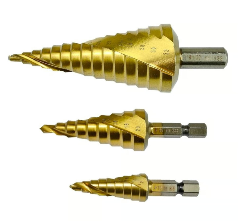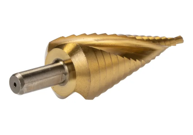 La broca escalonada de perfil cónico permite la producción de varios tamaños de orificio a partir de una sola broca. Recomendado para materiales más suaves o más finos. Adecuado para ampliar orificios existentes.
