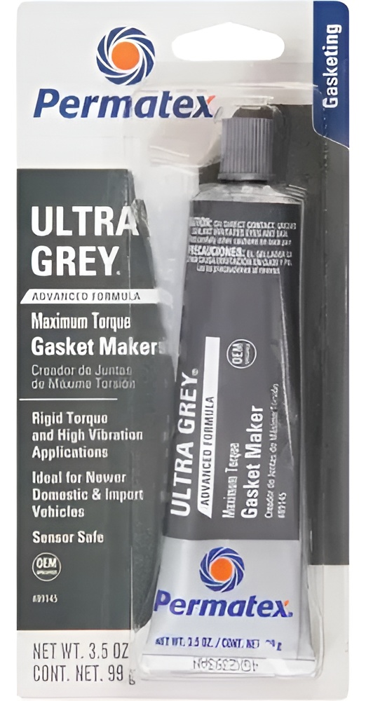 Permatex Ultra Grey está especificado para aplicaciones de alto par y alta vibración. Ultra Grey ofrece una fórmula no corrosiva, de bajo olor y segura para sensores, y está especificada por OEM para cumplir con los requisitos de garantía del concesionario. Este fabricante de juntas de alto rendimiento cumple con las especificaciones de rendimiento de las juntas de silicona OE y se puede utilizar en aplicaciones de alto par y vibración, como tapas de válvulas, bombas de agua, sellos de extremo del colector de admisión y carcasas de termostatos
