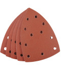 Triángulos abrasivos, MADERA Y METAL, corindón puro, 100 x 147 mm, recubierto de óxido de aluminio, ligado con resina sintética maciza, material de soporte reforzado, con dorso de terciopelo, perforado, para lijadoras delta/triángulo, para lijado de metal y madera, pintura, barniz, masilla, piedra y plástico.